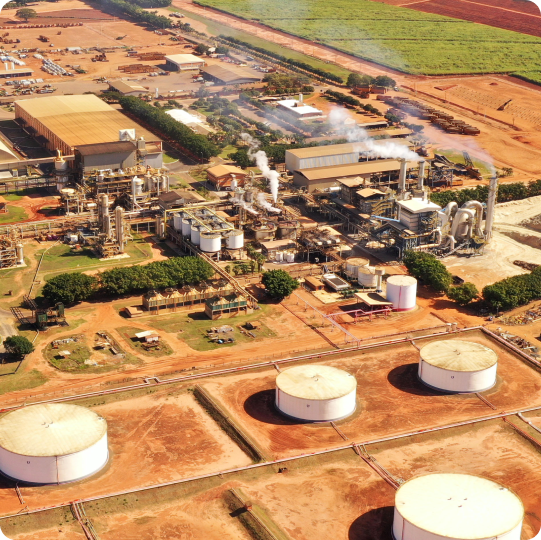 Nosso portfólio é diversificado e atende aos mercados nacional e internacional, com a produção de açúcar cristal branco e bruto, etanol hidratado e anidro, levedura inativa, biomassa, grãos como soja e milho, além de créditos de descarbonização (CBIOs), gerados a partir da certificação no programa RenovaBio. Essa diversidade expressa nossa capacidade de adaptação, eficiência e compromisso com práticas produtivas sustentáveis.